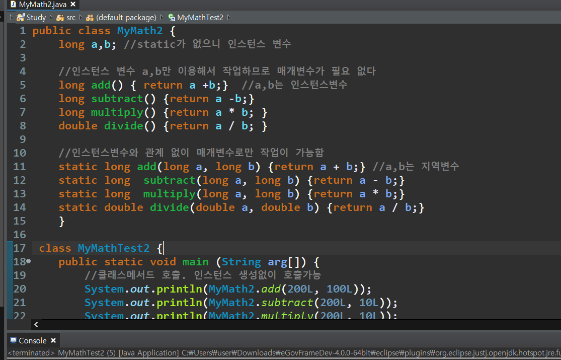 MyMathTest2 앞에 public 추가해주시고 저장 후