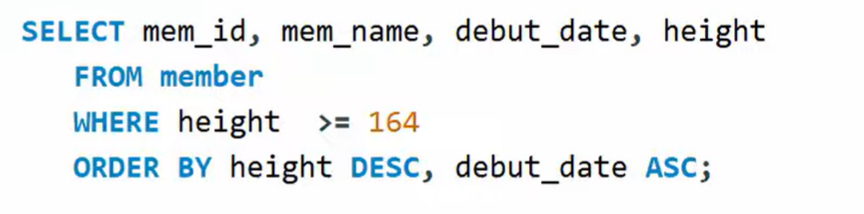-ORDER BY 절과 WHERE 절은 함께 사용할 수 있음( WHERE 다음 ORDER BY 써야함)