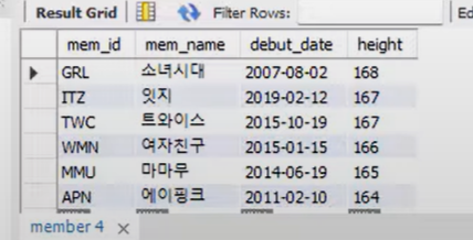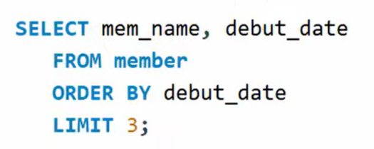 예를 들어 회원 테이블(member)을 조회하는데 전체 중 앞에 3건만 조회하려면