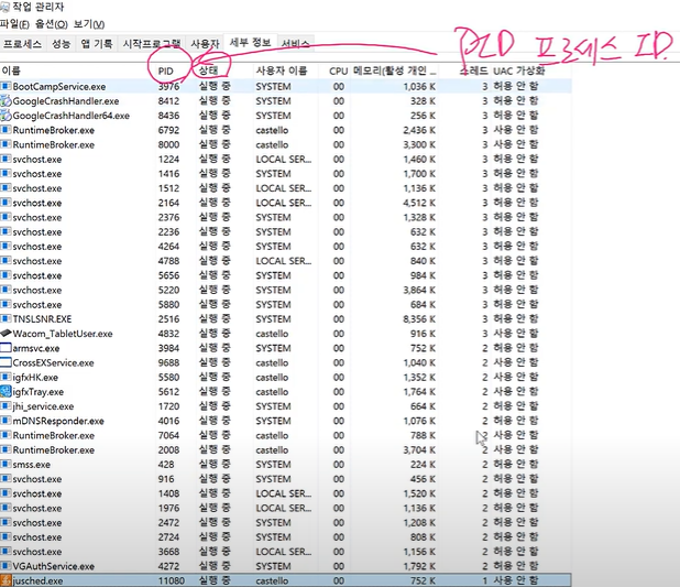 프로세스: 실행 중인 프로그램, 자원(resources)과 쓰레드로 구분