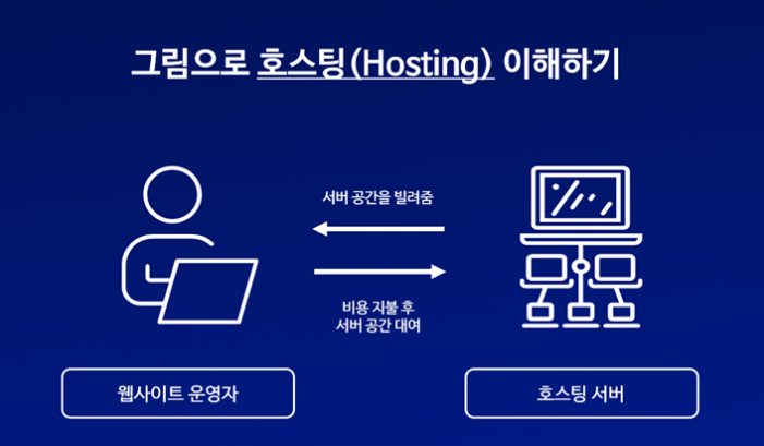 일반적으로 사용자가 직접 서버를 구입하고 운영할 필요 없이, 호스팅 업체에서 미리 구축한 서버를 임대하여 사용합니다.