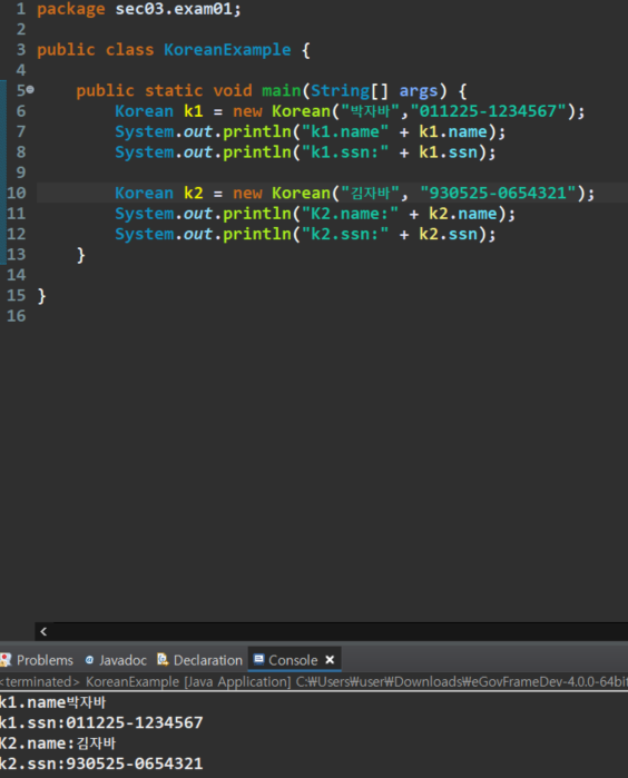 this.ssn = ssn; // 앞이 필드 뒤가 매개변수