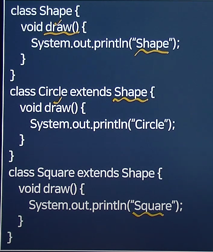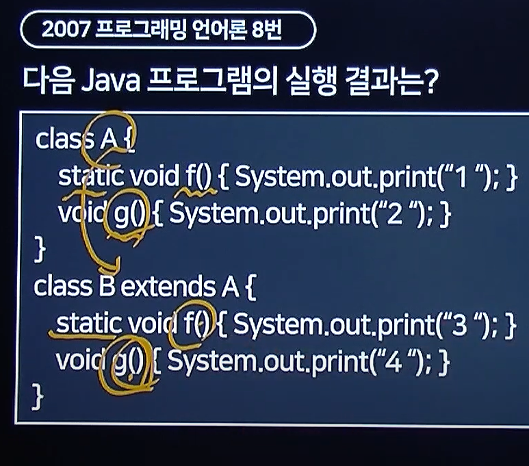 스테틱이잖아? -> 얘는 메소드 오버라이딩 개념이 아예 적용이 안돼