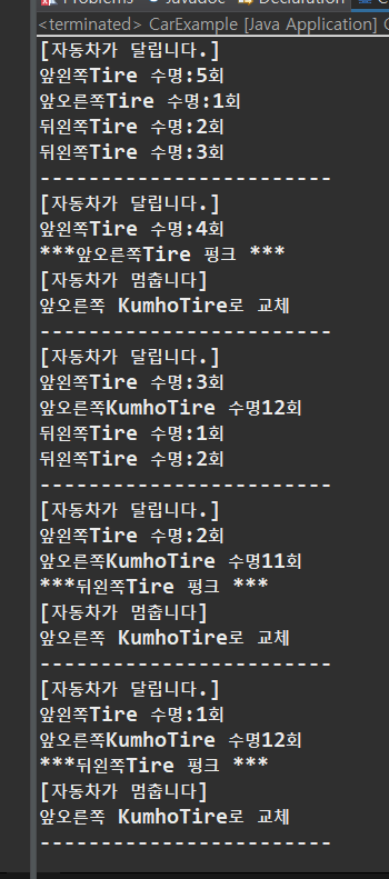 System.out.println("***"+location+"kumhoTire 펑크 ***");