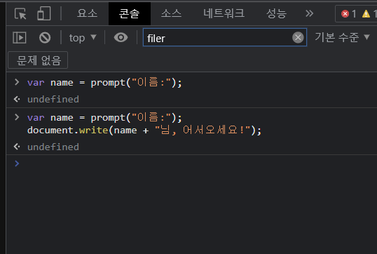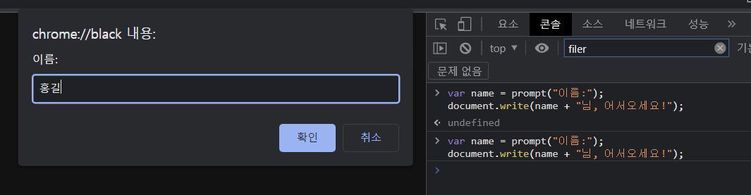 write() 함수는 document 객체에 포함된 거라 붙여줘야 함