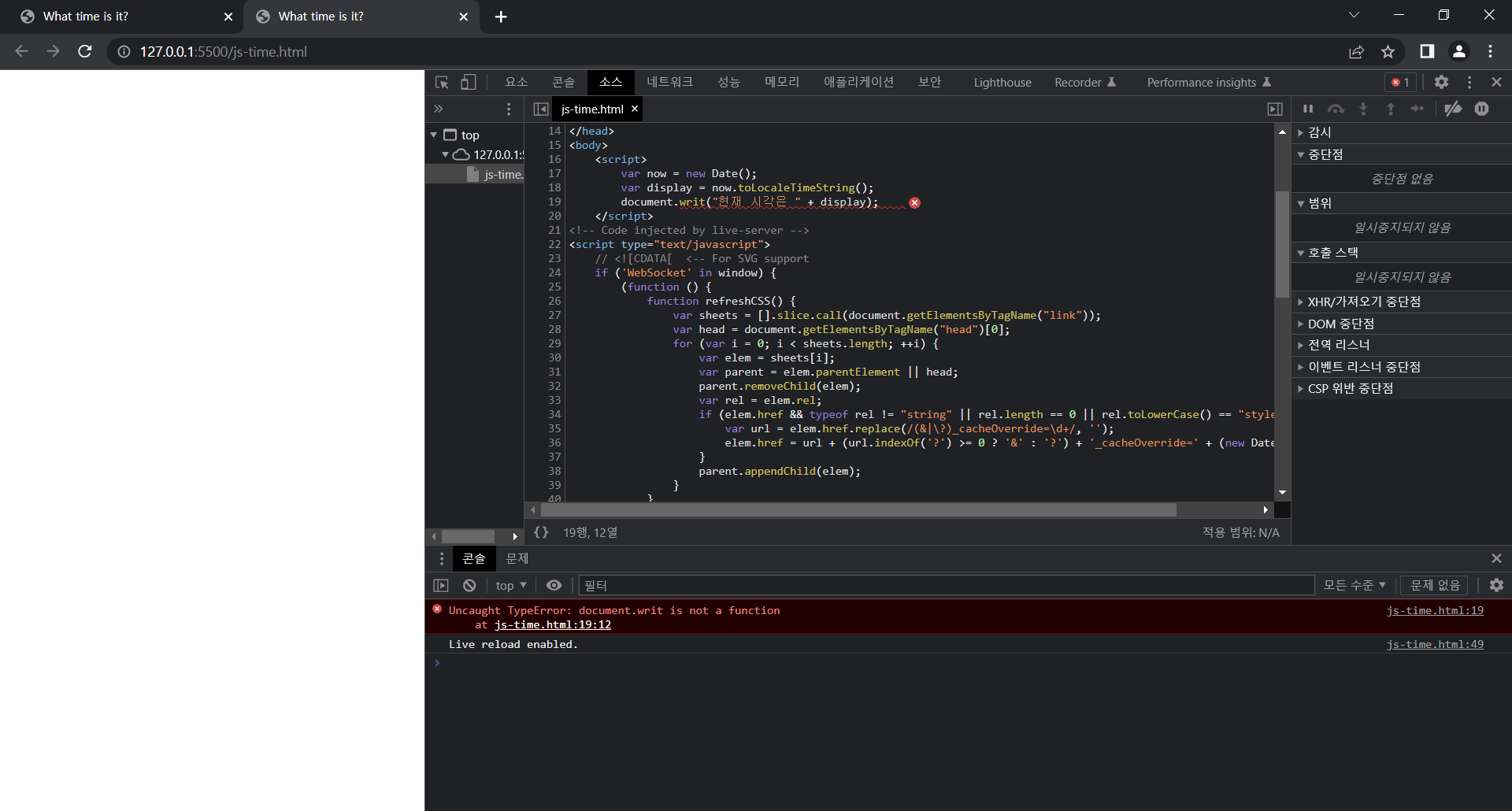 크롬 브라우저 콘솔로 오류 찾아내기 본문